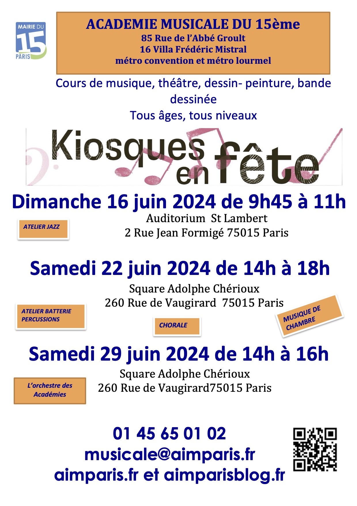 Académie Musicale du 15° : jeudi 29 juin à 20h métro Convention
