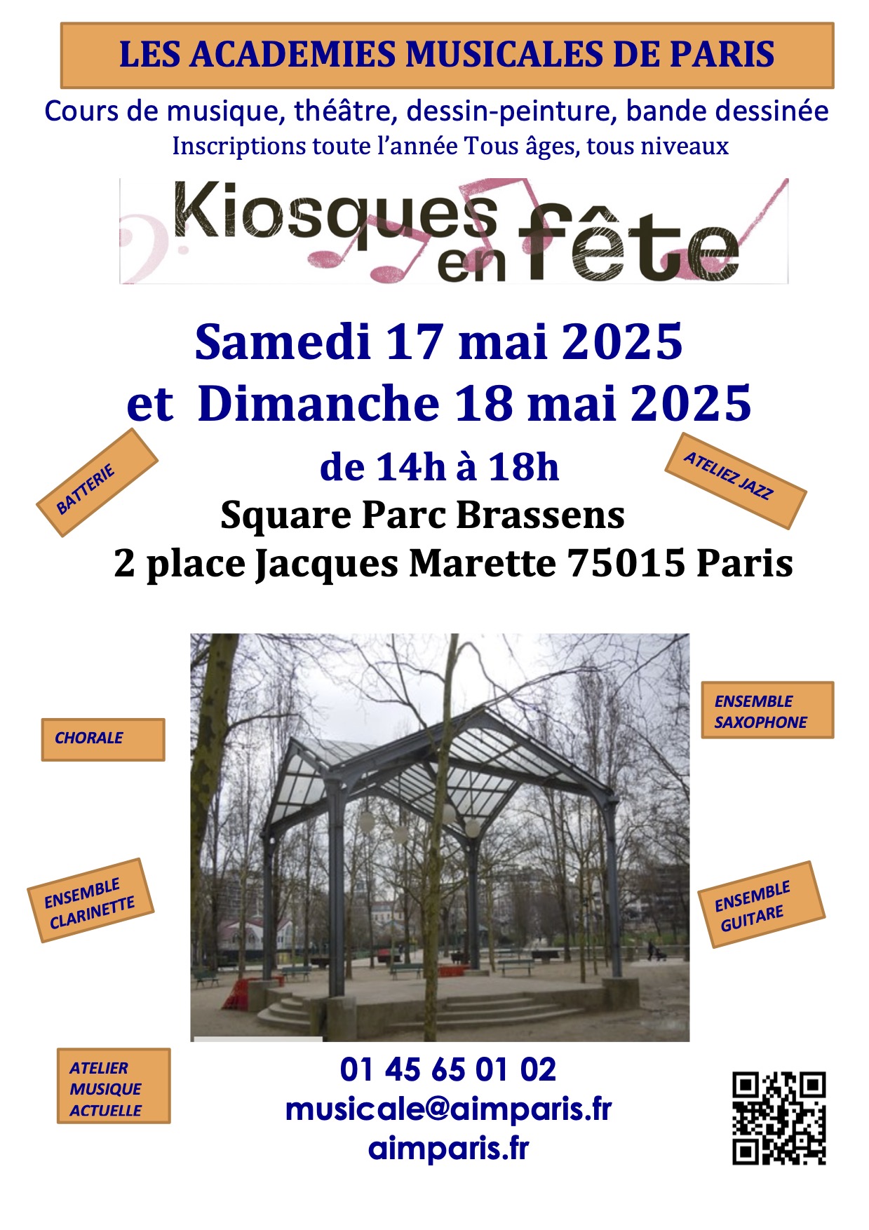En mai et juin il va faire beau autour des kiosques de la ville de Paris : venez nombreux écouter, encourager et applaudir nos élèves musiciens !!!