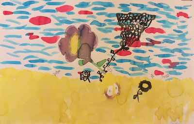 Aurélien / encres de couleurs, réhaussé à la plume et à l’encre de chine